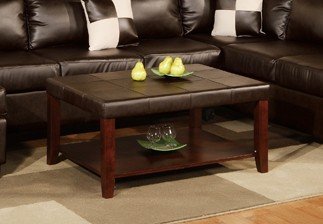 - Cocktail Coffee Table with Espresso Bonded Leather Match Top