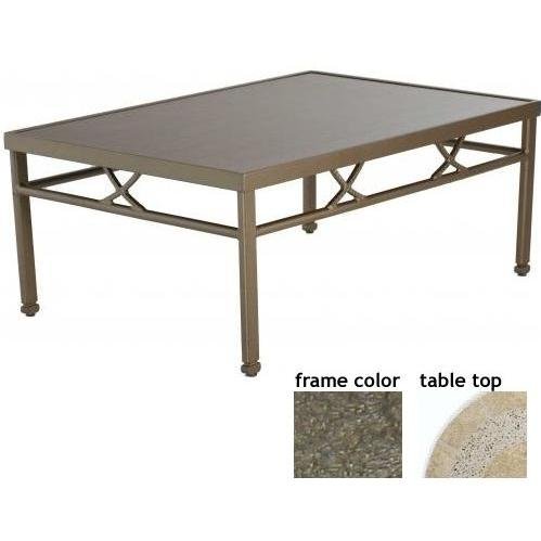 Hudson-Tanjor 32 X 48 Inch Aluminum Rectangle Cocktail Table - Stone With Scavo Bronze Frame. 633/48Y-BNZ. Coffee & Tea Tables. This Casual Creations Hudson-Tanjor 32 Inch x 48 Inch Aluminum Rectangle Cocktail Table - Stone with Scavo Bronze Frame is built to last for years. Each Cocktail Table is throughly cleaned and dried, then treated with special sealant before painting. Dimensions (in Inches): 48 D x 32 W x 19 H. All Casual Creations outdoor patio furniture is made from top quality aluminum. Read more...
