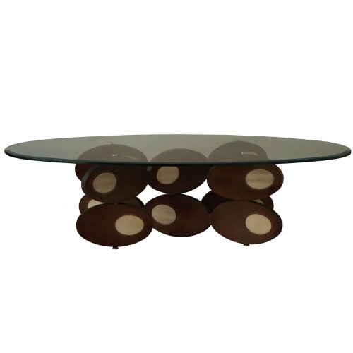 Pimentos in your cocktail, or underneath your table. Bronze pimentos, inside rootbeer colored olives, forms the base to this unusual cocktail table. Ships in two, connecting pieces. Oval glass top. Read more...