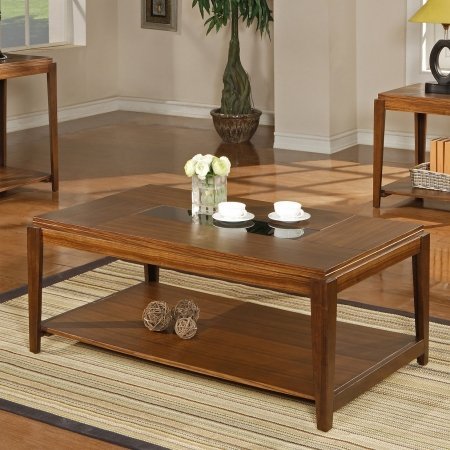 The Luxor Coffee Table has a sleek contemporary style followed by a modern cherry finish and glass panel cutouts. Modern Cherry Finish. Contemporary Style. Corner Block Construction on Chairs and Table. Tongue and Groove Joints. Black Glass Insert. Dimensions: L- 48 W- 28 H- 19 Read more...