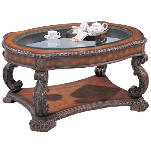 Free Shipping Coaster Doyle Traditional Oval Cocktail Table with Glass Inlay Top @ Amazon.com